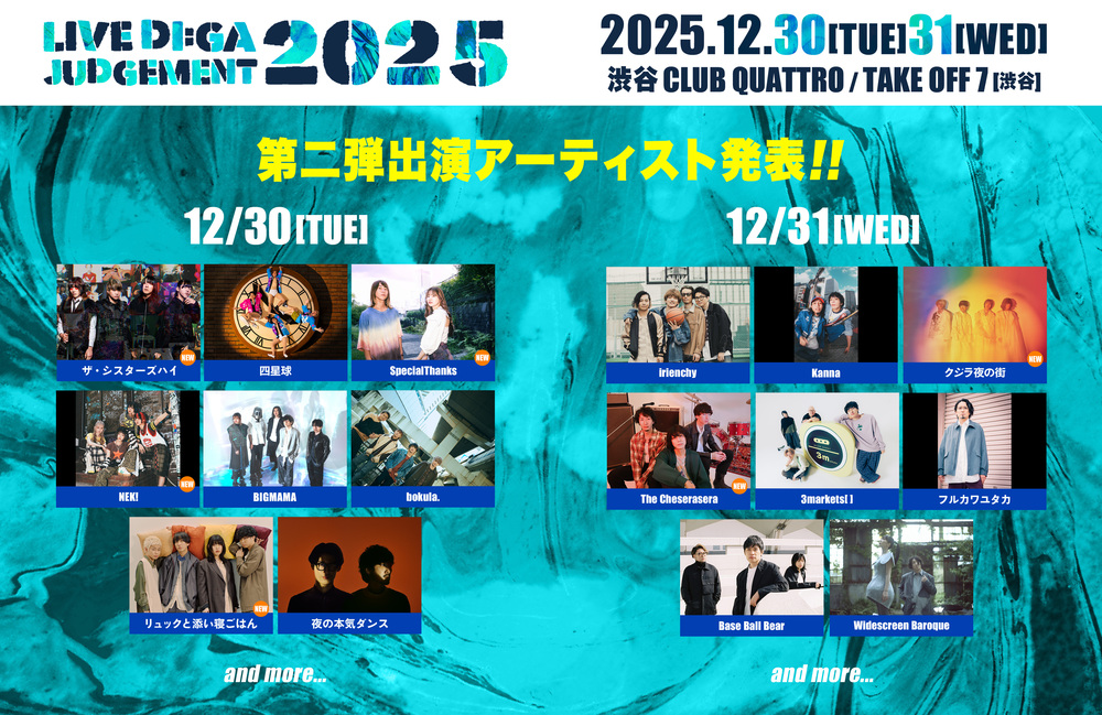 LIVE DI:GA JUDGEMENT 2025 SCHEDULE 2025/12/30(火) 渋谷 CLUB QUATTRO / TAKE OFF 7 フライヤー参照 🎫 ▶︎eplus.jp/judgement/ SpecialThanks はDAY 1の出演となります。 URLをコピーする 報告する